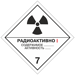 The seventh rate of dangerous goods includes radioactive materials and substances with a specific activity of more than 70 kBq / kg (2 nCi / g)